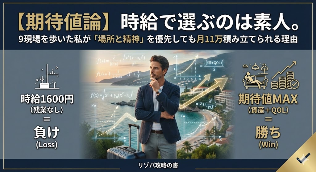 リゾバの期待値は、お金(プラス)だけでなく、「場所の価値(QOL)」と「精神的コスト」の合算で決まります。