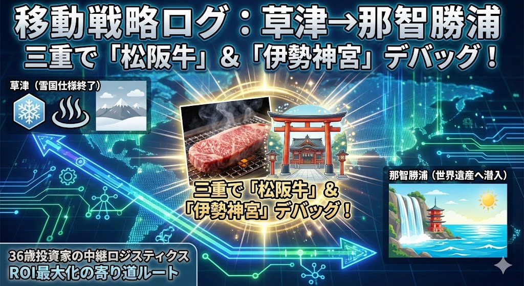草津での2ヶ月間が終了します。2月3日に契約満了を迎え、次なる戦地、和歌山・那智勝浦へと向かいます。 しかし、その前に1週間の「戦略的余白」を設けました。 この期間をどうデザインするか。そこに私の生存戦略が詰まっています。