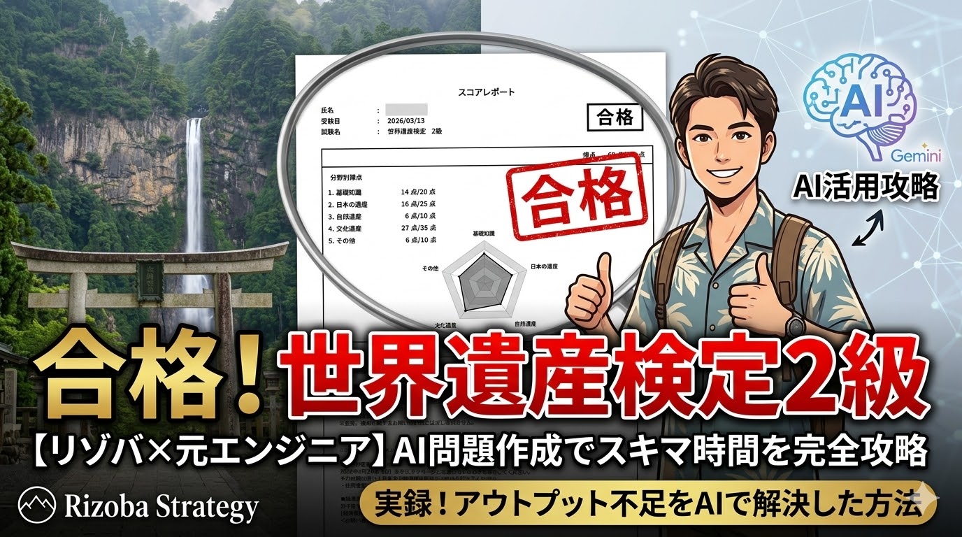 これが大きかった。基本的に世界の遺産に関しては赤字と黒字がメインで出るのでそれを覚える作業。過去問を解き尽くした後は、AIを家庭教師にしてひたすらアウトプットの数をこなしたのが良かったのだと思う。